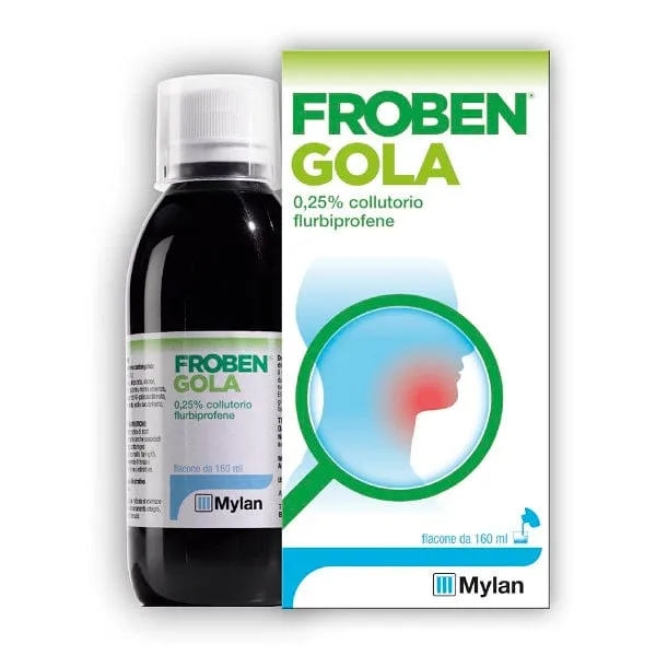 100 ml di collutorio contengono: Flurbiprofene 250 mg. Eccipienti coneffetti noti: propilenglicole, etanolo, olio di ricino idrogenato-40-poliossietilenato. Per l’elenco completo degli eccipienti, vedere paragrafo 6.1