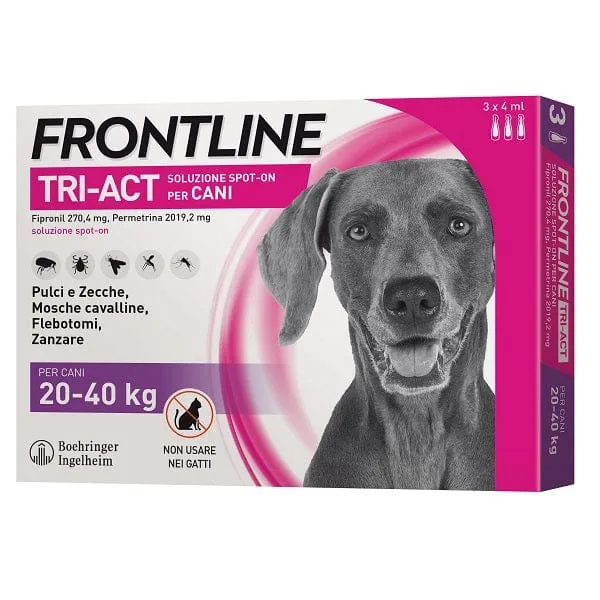 FRONTLINE TRI-ACT spot-on soluz 3 pipette 4 ml 274,4 mg + 2.019,2 mg cani da 20 a 40 Kg