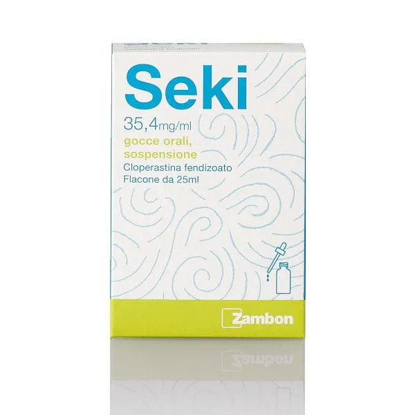 Seki 10 mg compresse rivestite, una compressa contiene, principio attivo: cloperastina cloridrato mg 10; eccipiente con effetto noto: saccarosio 38,07 mg. Seki 35,4 mg/ml gocce orali, sospensione 100 ml contengono, principio attivo: cloperastina fendizoato 3,54 g pari a cloperastina 1,8 g; eccipienti con effetti noti: saccarosio 14 g, metil-para-idrossibenzoato 0.2 g. 1 goccia (equivalente a 0,05 ml) contiene 1,8 mgdi cloperastina fendizoato pari a 0,9 mg di cloperastina. Seki bambini4,4 mg compresse masticabili, una compressa contiene, principio attivo: cloperastina fendizoato mg 4,4; eccipiente con effetto noto: saccarosio 36,8 mg. Per l’elenco completo degli eccipienti, vedere paragrafo6.1.