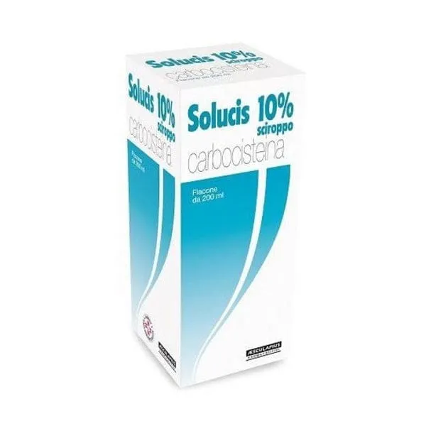 Sanguinamento gastrointestinale: sono stati riportati casi di sanguinamento gastrointestinale con l’uso di carbocisteina. Si raccomanda cautela negli anziani, nei pazienti con una storia di ulcere gastroduodenali o nei pazienti che assumono farmaci concomitanti noti per aumentareil rischio di sanguinamento gastrointestinale. In caso di sanguinamento gastrointestinale, il paziente deve interrompere il trattamento concarbocisteina. Pazienti asmatici e debilitati: si raccomanda di prendere specifiche precauzioni in pazienti con grave insufficienza respiratoria, in pazienti con asma e con una storia di broncospasmo, nonche’in pazienti debilitati. L’uso della carbocisteina provoca una diminuzione della viscosita’ del muco e un aumento della rimozione del muco, sia attraverso l’attivita’ ciliare dell’epitelio, sia attraverso il riflesso della tosse. Pertanto, e’ previsto un aumento della tosse e dell’espettorato. L’uso di medicinali antitussivi inibisce il riflesso della tosse e aumenta il rischio di ostruzione delle vie aeree, a causa di un aumento dell’accumulo di muco nelle vie respiratorie. L’uso concomitante di questo medicinale con medicinali sedativi della tosse e/o medicinali che inibiscono la secrezione bronchiale (ad es. medicinali anti-muscarinici) non e’ raccomandato. L’aumento dell’espettorato che puo’ evidenziarsi nei primi giorni di trattamento si attenua in seguitorapidamente. SOLUCIS contiene: metile para-idrossibenzoato; etile para-idrossibenzoato; propile para-idrossibenzoato che possono causare reazioni allergiche (anche ritardate). SOLUCIS contiene 6.3 g di saccarosio per 15 ml di sciroppo (1 cucchiaio) e 2.1 g di saccarosio per 5 mldi sciroppo (1 cucchiaino). I pazienti affetti da rari problemi ereditari di intolleranza al fruttosio, o da malassorbimento di glucosio-galattosio, o da insufficienza di sucrasi isomaltasi, non devono assumere questo medicinale. La posologia giornaliera di 3 cucchiai al giorno(pari a 45 ml di sciroppo) contiene 18.9 gr di saccarosio, mentre la posologia di 3 cucchiaini al giorno (pari a 15 ml di sciroppo) contiene6.3 g di saccarosio. Di cio’ si tenga presente in caso di diabete o diete ipocaloriche. SOLUCIS 100 mg/ml contiene 192,4 mg di sodio per 15ml di sciroppo (1 cucchiaio) equivalente al 10% dell’assunzione massima giornaliera raccomandata dall’OMS che corrisponde a 2 g di sodio per un adulto. La dose massima giornaliera di SOLUCIS 100 mg/ml e’ equivalente al 20% dell’assunzione massima giornaliera raccomandata dall’OMS con la dieta di un adulto; SOLUCIS 100 mg/ml e’ quindi considerato ad alto contenuto di sodio. Questo aspetto dovrebbe essere particolarmente preso in considerazione per coloro che seguono una dieta a basso contenuto di sale. SOLUCIS 50 mg/ml contiene 97,4 mg di sodio per 15 ml(1 cucchiaio) e 32,5 mg per 5 ml (1 cucchiaino) equivalente rispettivamente al 5% e al 1,6% dell’assunzione massima giornaliera raccomandata dall’OMS che corrisponde a 2 g di sodio per un adulto.
